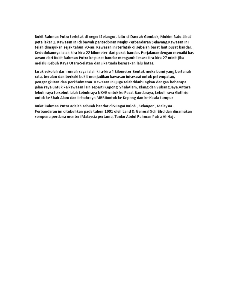 Latar Belakang Bukit Rahman Putra Terletak Di Negeri Selangor Pdf